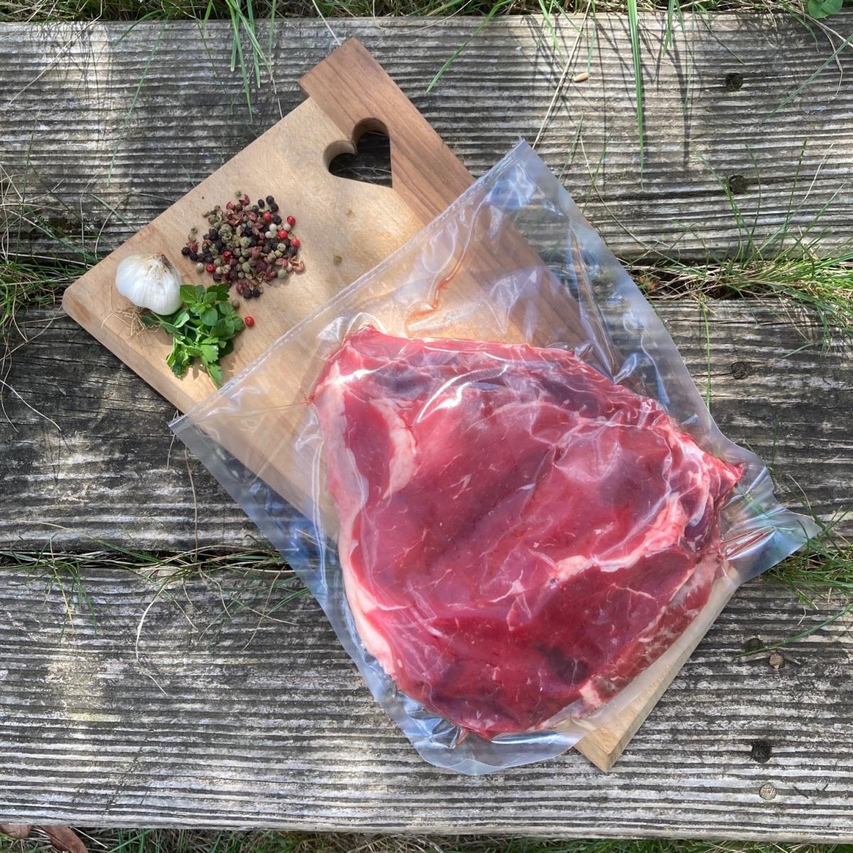 Entrecôte de boeuf, race limousine, agriculture biologique, mise sous-vide.