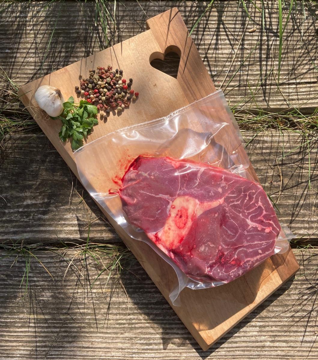 Viande de race limousine, agriculture biologique, mis sous-vide.