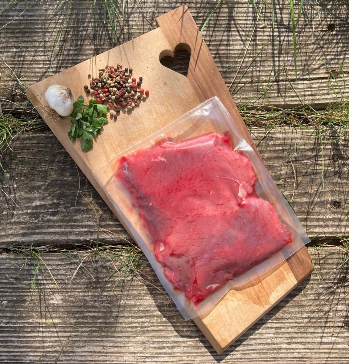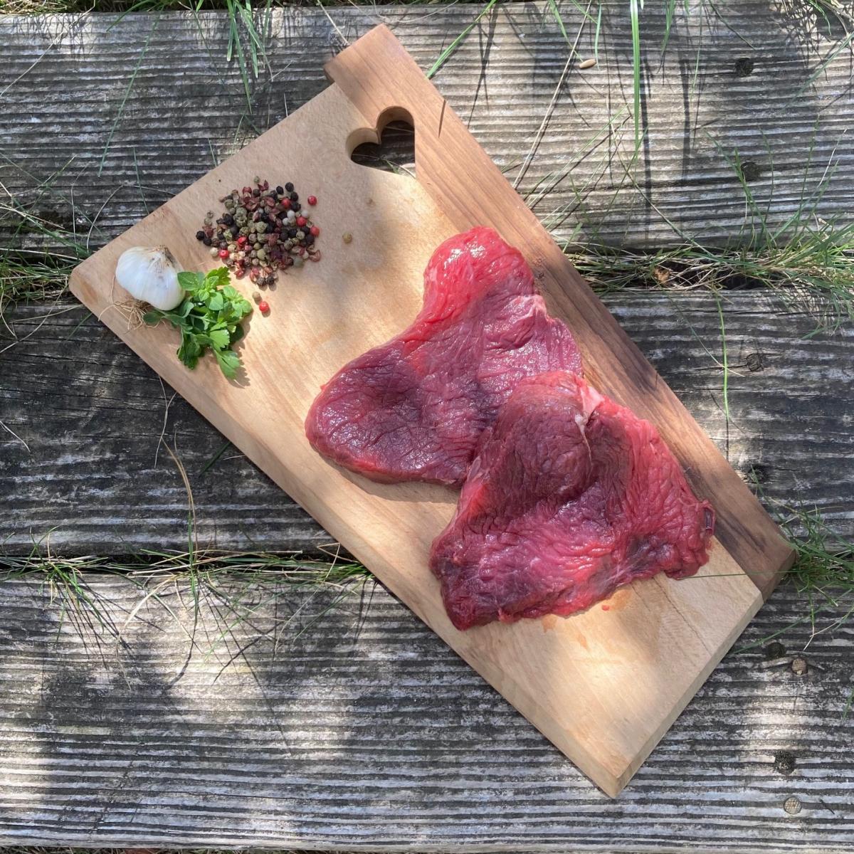 Pavés Steaks (rumsteak, coeur de tranche, rond parisien) de boeuf, race limousine, agriculture biologique, mis sous-vide.