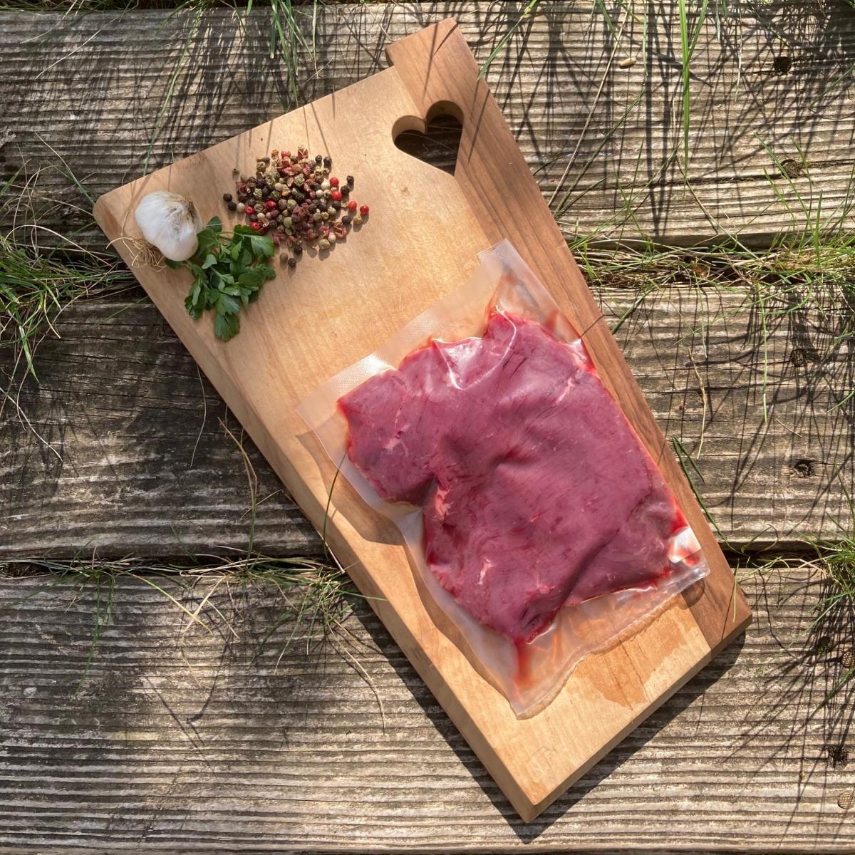 Steaks dans le rumsteack de boeuf, race limousine, agriculture biologique, mis sous-vide.