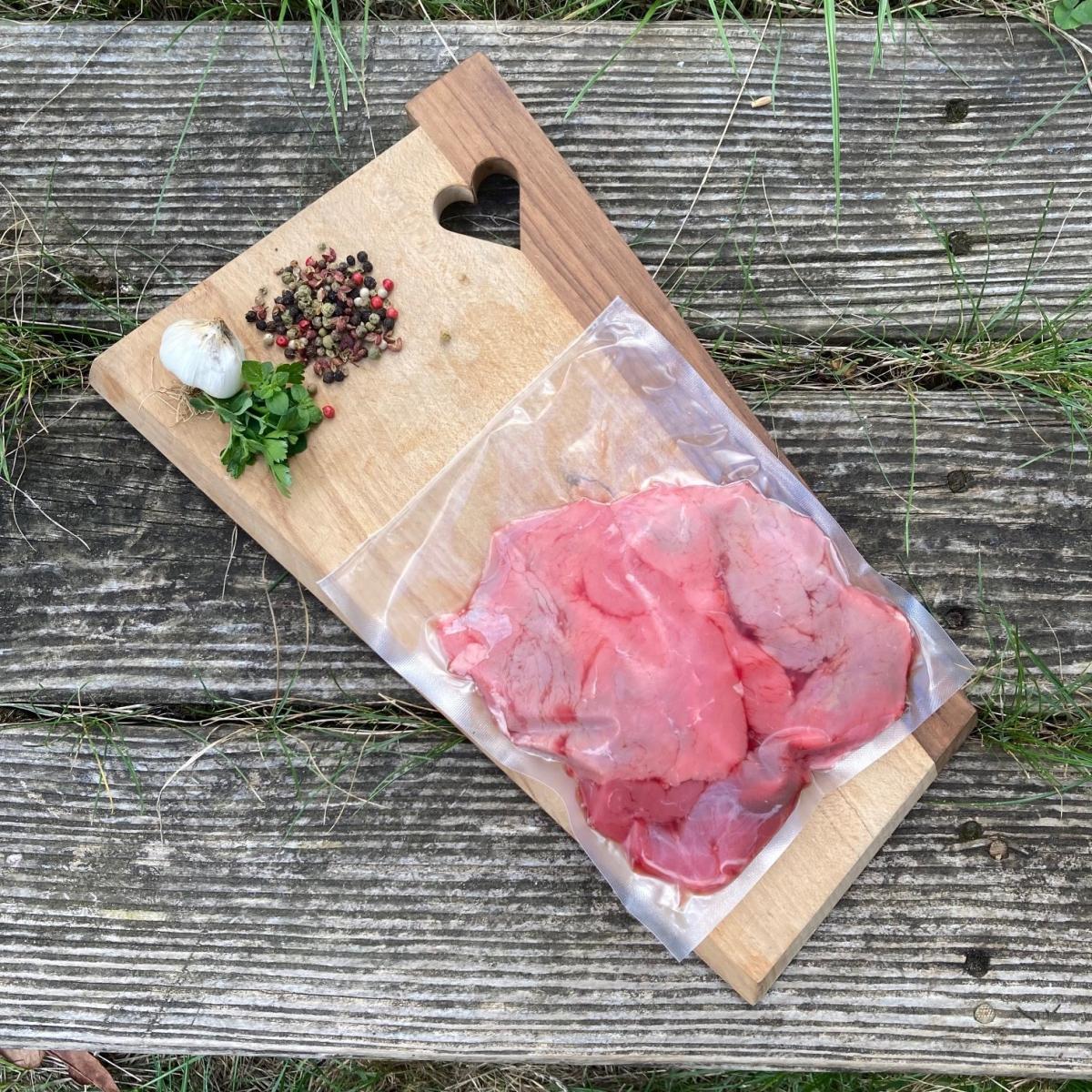Steaks dans poire et/ou merlan, race limousine, agriculture biologique, mis sous-vide.
