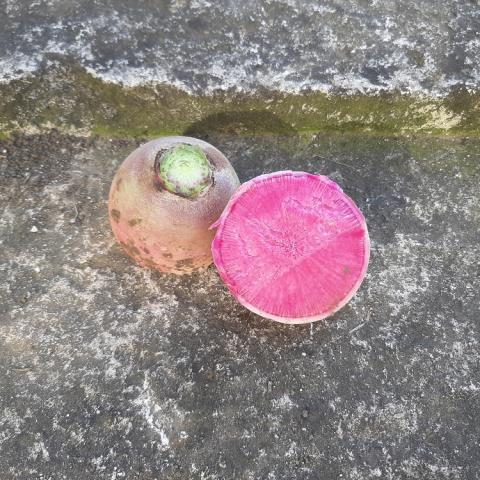 Radis d'hiver au goût doux et sucré à consommer cru de préférence.