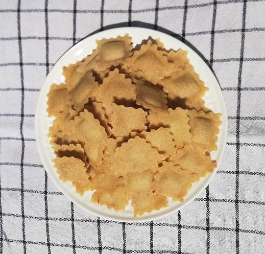 Ingrédients : Semoule de blé dur* et blé poulard*, farce (boeuf du cytise*, faisselle*, emmental*, semoule fine*, sel, chorizo*, poivre*), eau.