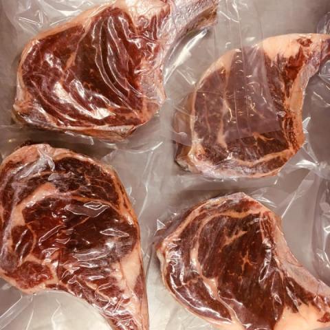 Côte de boeuf, race limousine, agriculture biologique, filmée puis mise sous-vide.
